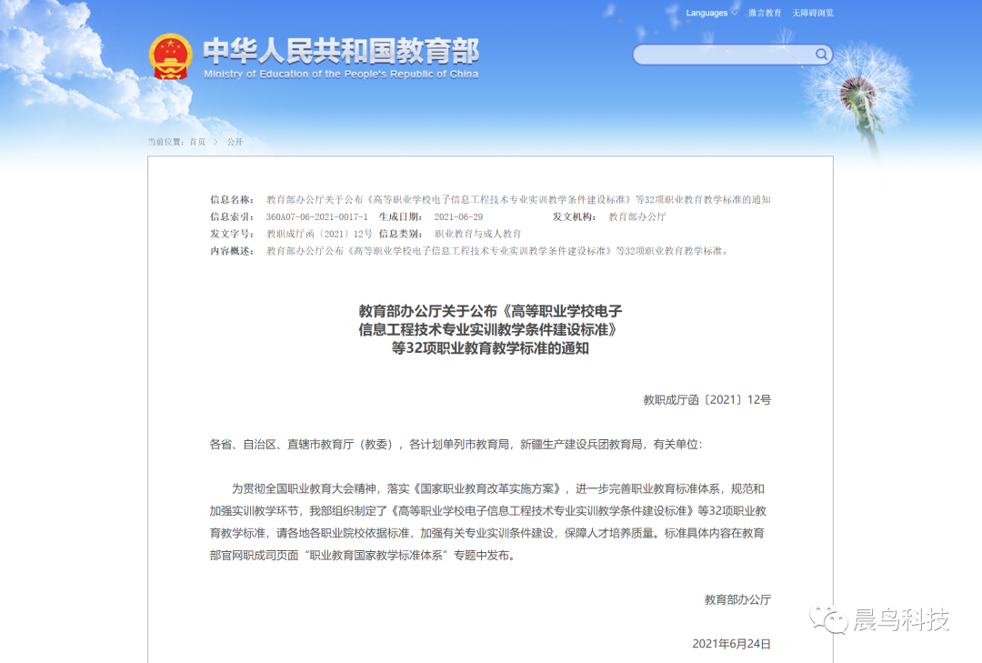 近日,为贯彻全国职业教育大会精神,落实《国家职业教育改革实施方案》,进一步完善职业教育标准体系,规范和加强实训教学环节,教育部颁布了《高等职业学校电子信息工程技术专业实训教学条件建设标准》等32项职业教育教学标准,其中包括《高等职业学校酒店管理与数字化运营专业实训教学条件建设标准》。 点击文件,下载《高等职业学校酒店管理与数字化运营专业实训教学条件建设标准》↓↓↓ 高等职业学校酒店管理与数字化运营专业实训教学条件建设标准.pdf 晨鸟科技“云私塾”系列之电子商务营运、酒店数字化运营与管理、现代物流营运、区块链金融等虚拟仿真博弈沙盘,均为行业首创、龙头产品,2018年推出数字教育区块链化版本,2019年推出沙盘精灵智能化版本,2020年推出随机案例云化版本、教育竞赛区块链及可视化版本。在区块链化、智能化、云化技术红利期,面向行业标杆合作院校,免费升级原有产品,欢迎垂询。联系邮箱sunwenjie@chenniao.com,专业服务请致电400-820-3886。 查看原文,请点击下方链接↓↓↓ http://www.moe.gov.cn/srcsite/A07/moe_953/202107/t20210706_542723.html |