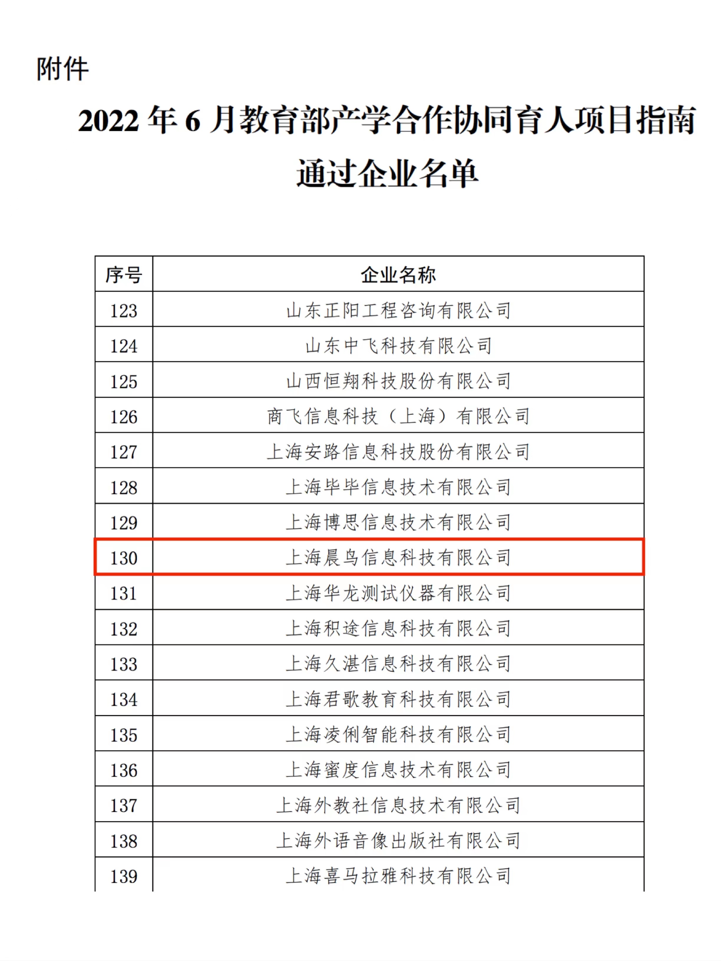 2022年产学合作协同育人项目 各省、自治区、直辖市教育厅(教委),新疆生产建设兵团教育局,有关高等学校,有关企业: 为深入贯彻《“十四五”教育发展规划》《国务院办公厅关于深化产教融合的若干意见》等文件要求,调动好高校和企业两个积极性,实现产学研深度融合,以产业和技术发展的最新需求推动高校人才培养改革,根据《教育部产学合作协同育人项目管理办法》(教高厅〔2020〕1号),经企业申报、产学合作协同育人项目专家组审议通过,形成了2022年6月产学合作协同育人项目申报指南,共有200家企业通过评审(企业名单见附件)。各企业申报指南详情请登录“教育部产学合作协同育人项目平台”(以下简称“平台”,网址:http://cxhz.hep.com.cn)查询。现将有关事项通知如下。 一、请各省(市、区)教育厅(教委)加强组织和宣传,将本通知转发给相关高校,动员更多教师积极参与产学合作协同育人项目。 二、有关高校要根据各校情况和产学合作需要,组织师生自本通知发布之日起自愿在平台注册申报,并加强项目申报及实施过程管理,指定专门人员在平台上负责项目申报、协议签署、结题审核等工作。 三、有关企业要严格遵守《教育部产学合作协同育人项目管理办法》,切实履行承诺,规范项目管理,保证项目评审的公开公正,及时公布项目评审结果。 四、时间安排 9月30日前在平台内完成协议确认的项目,将纳入2022年第二批立项名单审核与发布。 9月30日后在平台内完成协议确认的项目,将不纳入教育部产学合作协同育人项目。